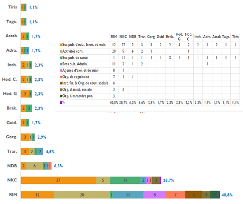 توزيع المؤسسات والشركات العمومية حسب الجهة وفق منطقة التدخل | 2022